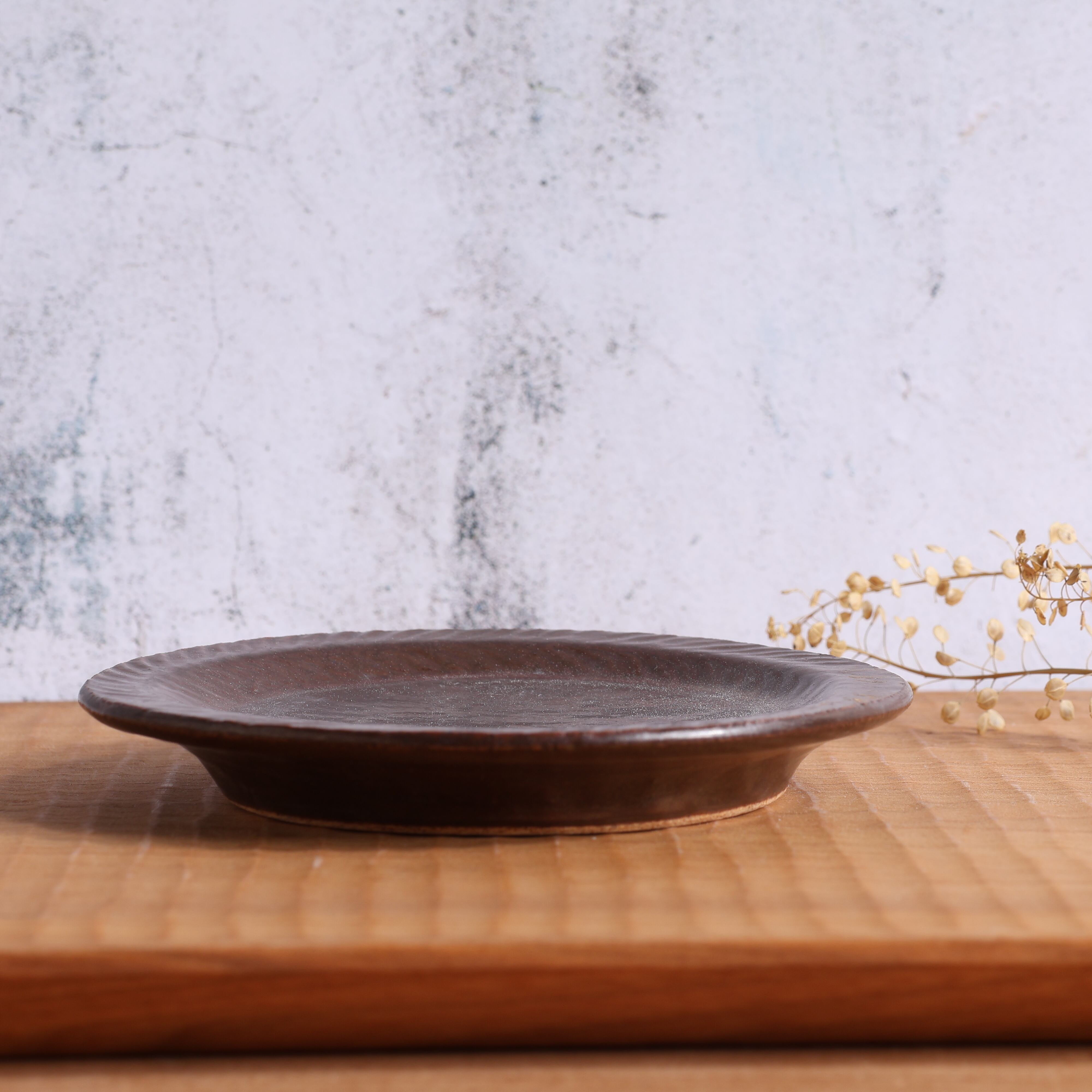 縁の模様が存在感のある小皿です。