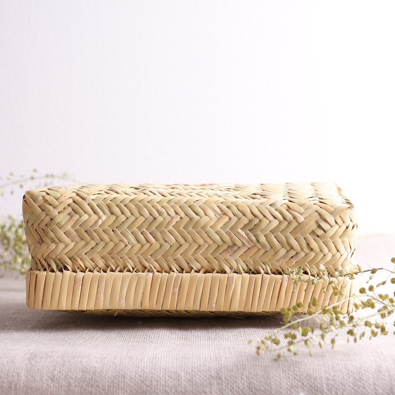 食事をより一層楽しくするおしゃれなアイテムです。 お弁当を持ってピクニックやオフィスに出かける楽しい時間に、このかごを持っていく。さりげないおしゃれを楽しみながら、おいしい食事を楽しんでください。また小物入れとしてお使いいただいても素敵なインテリアを演出してくれます。