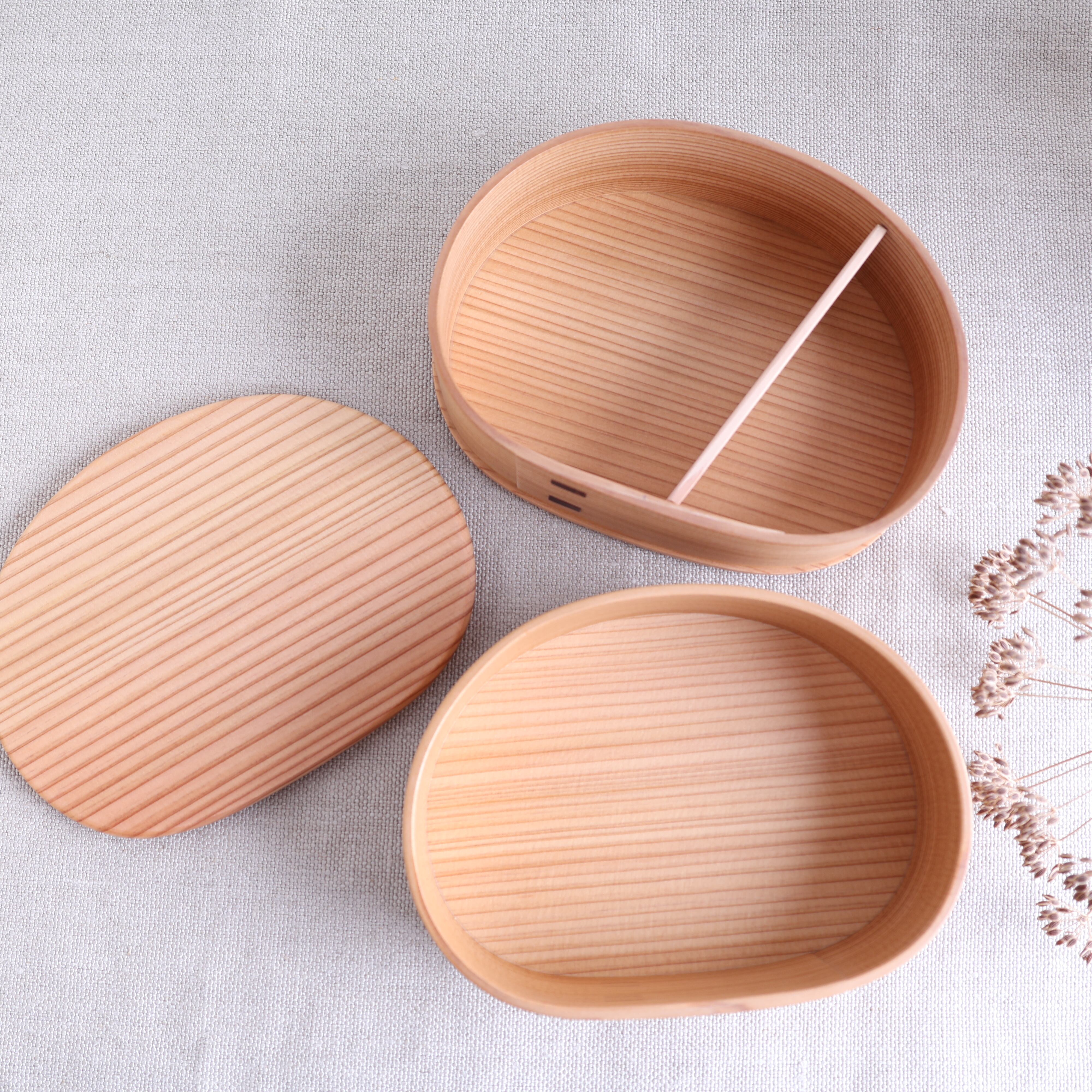 秋田杉の魅力を味わえる、いろは弁当箱。木の温かみが感じられる手触りと、美しい木目が特徴です。とても軽く、持ち運びにも便利です。日本の伝統的な弁当箱を楽しんでみてはいかがでしょうか。お弁当タイムを特別なひとときにしてくれます。